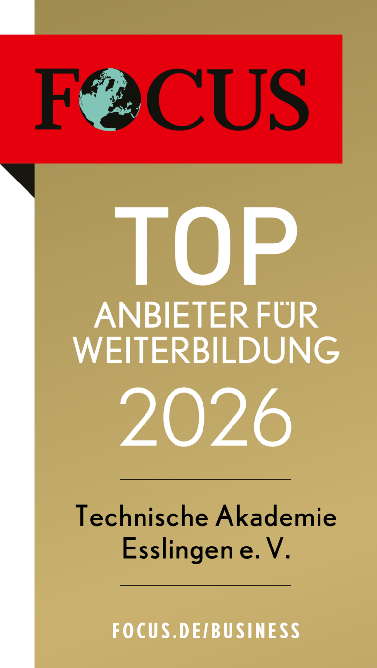 Die Technische Akademie Esslingen (TAE) gehört auch 2026 zu den besten Weiterbildungsanbietern Deutschlands – und das bereits zum siebten Mal in Folge. Unter mehr als 20.000 Institutionen der Erwachsenenbildung wurde die TAE von FOCUS-BUSINESS als TOP-Anbieter für Weiterbildung ausgezeichnet.