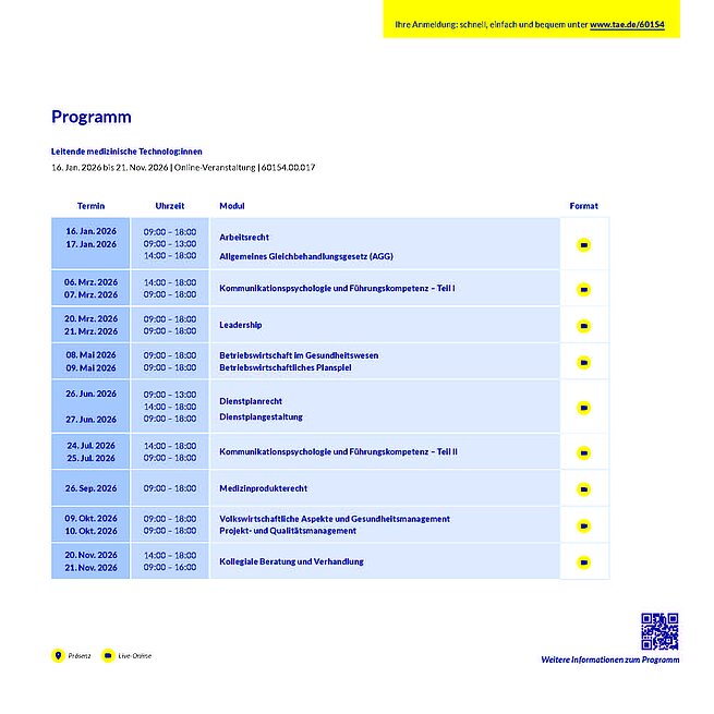 Der Zertifikatslehrgang „Leitende MTR“ an der TAE ist eine herausragende Weiterbildung für alle, die ihre Karriere im Bereich der Radiologie auf das nächste Level heben möchten.