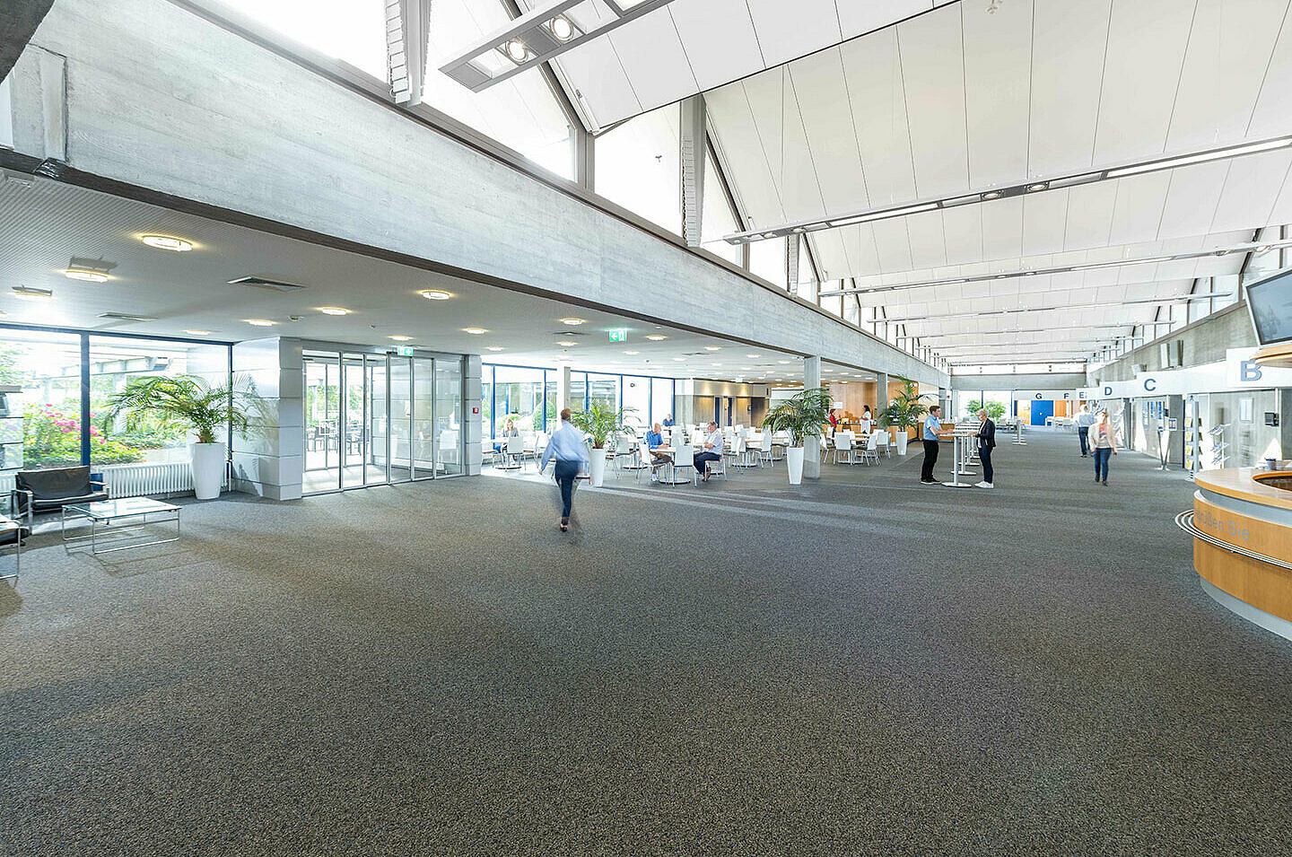 Durch den räumlichen Zusammenhang von Foyer, Cafeteria und Vortragsräumen ermöglichen wir Ihnen einen optimalen Zugang zu den Teilnehmern.